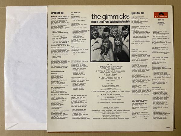 パラッパ・コーラスなハッピー・サンバの「The Drummer Man」!スウェーデンの人気グループのサードLP。「Homeless」などのサウダージ感漂う哀愁ボッサに、ドラマチックに飛翔するソフトロックの「It’s My Blame」、厚いサウンドのショウビズ風「The Fireworks On The Sky Have Gone Green」なども収録。彼らの諸作の中でもレアなアルバムです!*時おり軽いパチ・ノイズ。ジャケ縁付近に擦れ/皺有りです。