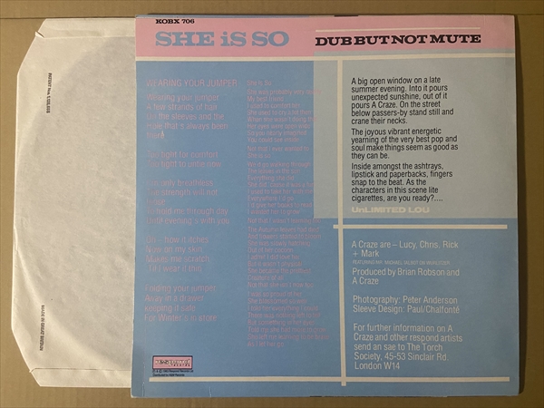 爽やかな女性ボーカルとシャープなホーンのインディーポップ人気曲の「She Is So」!Paul Wellerがプロデュースした4人組による唯一のオリジナル・リリース。トゥルットゥ・コーラスの日溜まりネオアコボッサのタイトル曲に、7inchには未収のそのインストとリズミカルに跳ねるブルーアイド・ソウルの「Dub But Not Mute」を収録。全曲素晴らしいRespond Labelの最高傑作です![4track 12inch]*ジャケ縁付近に擦れ/皺。裏左上にキズ有りです。