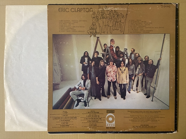 エリック・クラプトン 白ラベル プロモ盤! SD 33-329。 MAT= ST.C.701879-B LW AT aB W / ST.C.701880-B LW AT aB W。*盤面に擦れ/浅い傷が多いですが、ほぼ音には影響しません。「Easy Now」の最後に軽いパチ・ノイズ。曲のイントロやアウトロに極軽いチリ/パチ・ノイズ。(試聴はノイズの気になる部分です。)ジャケ縁付近に擦れ/皺/剥がれ。左上にプロモ・シール。裏右上に書き込み有りです。