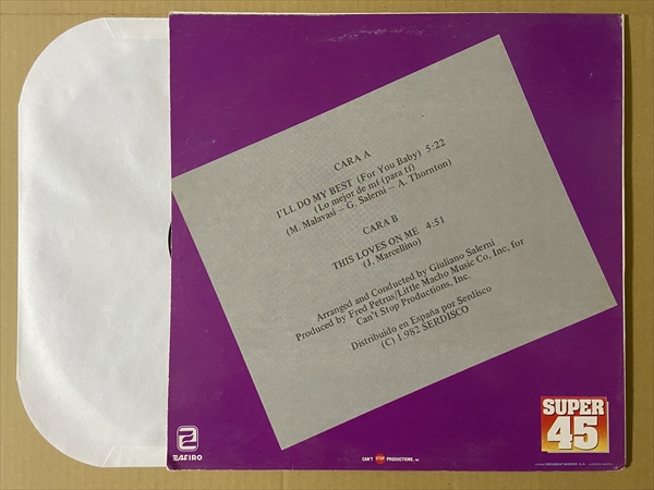 安定感の有るトラックに華やかな女性ボーカルが映えるNY系ミディアム!70年代に「Brazil」などのディスコ・ヒットを放ったフィラデルフィアのグループ。ChangeのFred Petrusがプロデュースした後期の人気曲。B面には切なくもポジティヴな雰囲気が漂うミディアム・ダンサーの「This Loves On Me」を収録。ジャケ付きでリリースされたスペイン盤です![45RPM 2track 12inch]*ジャケ縁付近に擦れ/皺有りです。