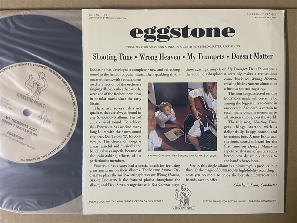 90s スウェディッシュ・ポップを代表する名曲の「My Trumpets」!Tore Johanssonがプロデュースしたマルメ近郊出身のトリオによるセカンド・シングル。マンチェスター風のインディーダンス・チューン「Shooting Time」も収めた4曲入り。タイトル文字が黒色ジャケのオリジナル・ファースト・プレスです![4track 7inch]*音の薄い部分で軽いチリパチ・ノイズ。ジャケ縁付近に擦れ/皺。裏右上にシミ小。厚みの有る固めのジャケです。