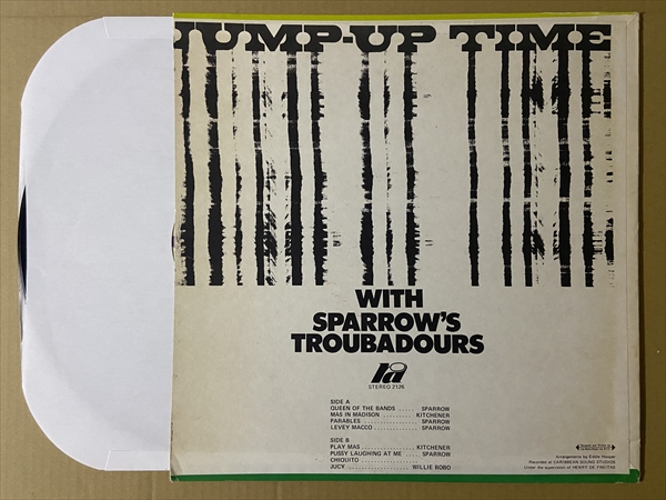 パーカス・ブレイクで始まるインスト・カリプソの「Play Mas」!カリプソ・キングMighty Sparrowのバックバンドとして知られるグループ。SparrowとLord Kitchenerのカリプソ・ナンバーを中心に、ラテン色の濃い目な「Chicquito」、Willie Boboのコーラス入りブーガルー・テイストの「Juicy」も収録。グルーヴィーなラテン・インストが満載のアルバムです!*音の薄い部分でサー・ノイズ。「Mas In Madison」と「Pussy Laughing At Me」の中盤にニキビ/バチ・ノイズ各8。ジャケ縁付近に擦れ/皺。裏に日焼け有りです。