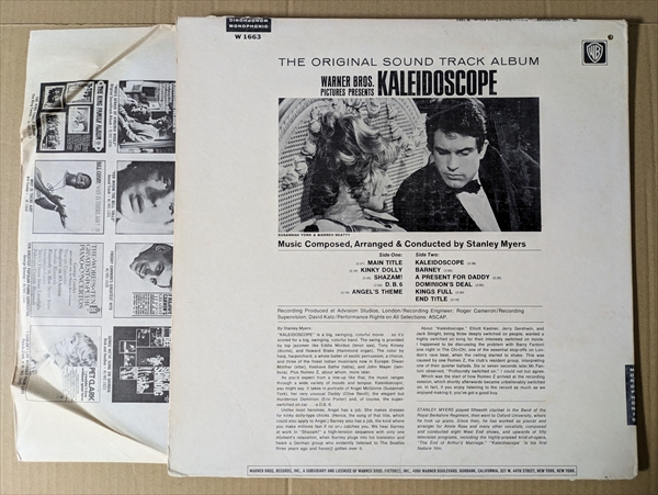 コミカルで猥雑な唄入りブーガルー・フレイヴァの「Kaleidoscope」! Warren BeattyとSusannah Yorkが主演したクライム・コメディ映画のサントラ盤。シタールのイントロから転調していく「Shazam!」に、ゆったりボサ・タッチの「Angel’s Theme」、サーカス〜ジャグバンド風で楽しい「Dominion’s Deal」、ハープシコードが煌めくインスト・ナンバーなども収録。タイトル通り変容していく曲調がカラフルな作品です!*時折軽いパチ・ノイズ。ジャケ縁付近に擦れ/皺。左上に金具付きパンチ穴。右上縁に4cmと右下縁に2cmの割れ有りです。