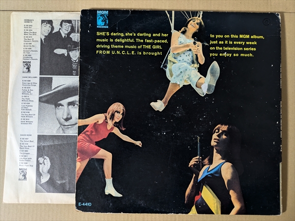 女性スキャットで洒落たボサ・ジャズの「The Girl From U.N.C.L.E.」! 『0011ナポレオン・ソロ』のスピンオフ『0022アンクルの女』のサントラ盤。試聴の他に、同系で更にエレガントな「April」、ダイナミックなジャズ・チェイサー「Somewhere In Greece (Dave Grusin)」なども収録。ハードバップやクールジャズの演奏が、スパイ映画ならではのスリリングな雰囲気を醸す人気作です!*音の薄い部分で所々極軽いチリ・ノイズ。ジャケ縁付近に擦れ/皺/葉gれ。上下縁に各7cmの割れ。裏に細かな剥がれ。見開きジャケ。カンパニースリーヴ付きです。