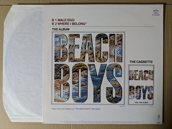 Beach Boysジャケ付きヨーロッパ盤12inch!メンバーで唯一のサーファーであったデニスの水死を乗り越えて制作されたアルバム『The Beach Boys』からのヒット曲。B面にはBrian作の「Male Ego」「Where I Belong」を収録。ジャケ付きでリリースされたコレクターズ・アイテムです![45RPM 3track 12inch]*ジャケ縁付近に擦れ/皺有りです。