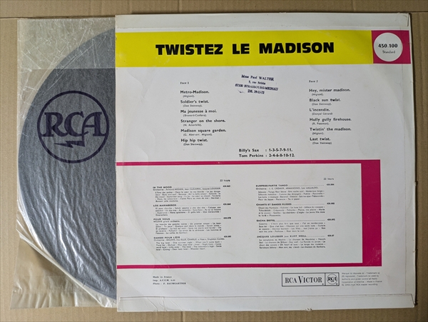 B級GSや昭和歌謡に通じるイナタいエレキ・インストの「Last Twist」!アメリカから輸入されフランスで流行したマジソンをフィーチャーしたダンス・アルバム。チープなオルガンやデケデケ・ギターと哀愁メロディーの「Black Sun Twist」などのイナタいインストを中心に、女性スキャット入りでスパイ映画風の「Ma Jeunesse A Moi」なども収録。Readymade HPでピチカート小西康陽氏が紹介されていたJazz & Jiveな作品です!*ラベルAB面に書き込み。B面に浅いキズ多。ジャケ縁付近に擦れ/皺/剥がれ。裏上部にスタンプ。オモテ面コーティングのフリップバック・ジャケです。