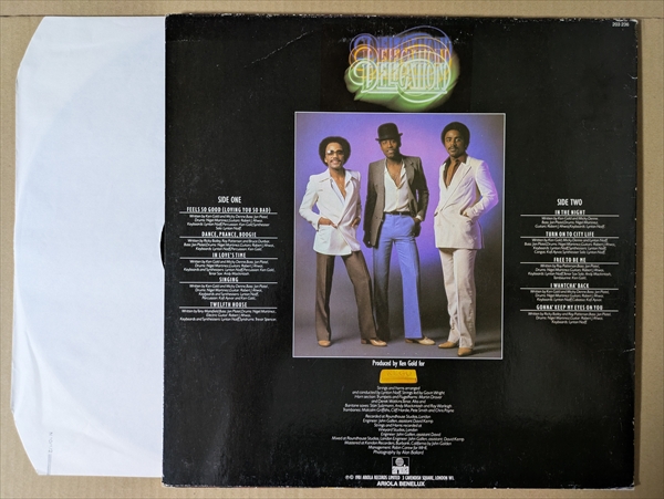 ナナナ・コーラスがキャッチーな哀愁ラテン・ダンサーの「Singing」!UKの名プロデューサーKen Goldが手掛けたグループによるサードLP。いかにもDelegation らしい人気のメロウ・ダンサー「In The Night」「I Wantcha’ Back」も収録。EW&F風のバラード「In Love’s Time」やアーバン・フレイヴァ漂う「Turn On To City Life」も素晴らしいです!*音の薄い部分で時折軽いチリパチ・ノイズ。ジャケ縁付近に擦れ/皺。裏左上に皺大有りです。