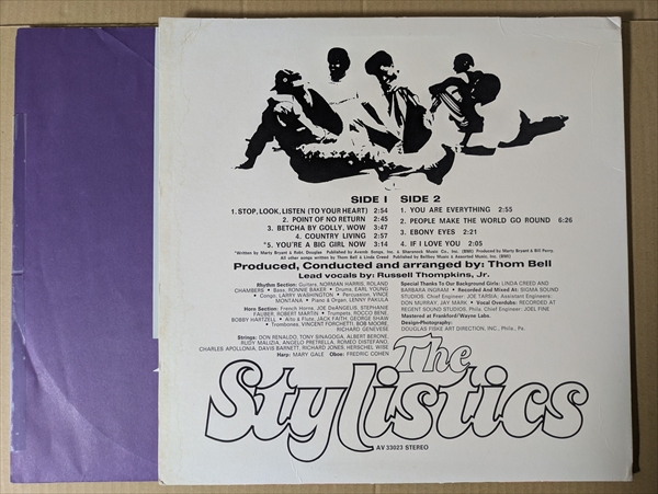 多くのカバーやサンプリングネタとしても有名なソウル・バラードの「You Are Everything」 フィリー・スウィートの要人Tom BellがプロデュースしたファーストLP。同じくスロウの名曲「Betcha By Golly Wow」、AZ「Sugar Hill Remix」で使用された「People Make The World Go Round」などファルセットのリードと甘いコーラスの絡みが絶妙な名盤です!*盤面に浅いキズ多。音の薄い部分でチリパチ・ノイズ。ジャケ縁付近に擦れ/皺。裏上部に皺大。左端にシミ。ハイプ・ステッカー付きです。
