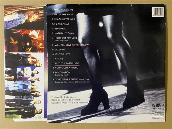 キャロル・キング、94年リリースのレア・ライヴ!彼女自身が管理するKing’s Xからリリースされたライヴ録音集。Guns’n’RosesのSlashがギターソロを披露する「Locomotion」と「Hold Out For Love」や、David Crosby & Graham Nashが美しいコーラスを添える「You’ve Got A Friend」なども収録。名曲の数々をライヴならではのノリで楽しめる2枚組。94年にスペイン・とブラジルのみでリリースされたレア・アナログです![2LP]*ジャケ縁付近に擦れ/皺。インサート付きです。