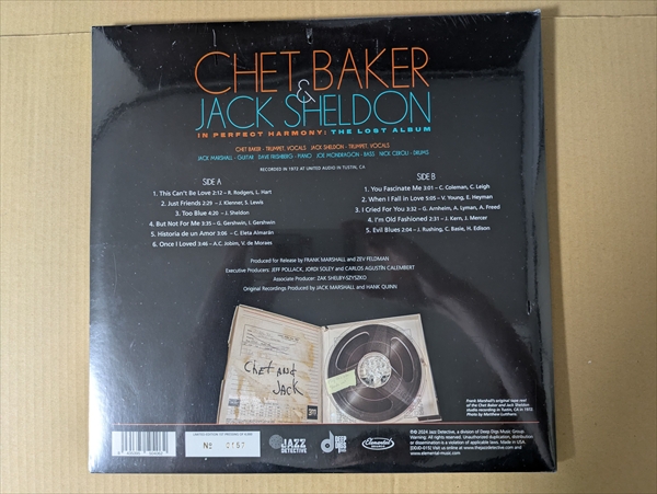Chet Bakerが唄う洒落たクール・ジャズの「But Not For Me」! 西海岸を代表する2人のトランペッター/シンガーの相当リーダーによる72年の未発表ライヴ音源。二人のボーカルを左右のチャンネルに分けて録音、ほぼ半分ずつでリードを担当、甘い歌声にとろけるチェットと、 フランス語詞やラップ風の唄いまわしも聴かせる渋いシェルドンとの対比もユニーク。トム・ジョビンをカバーした温かいボッサ・インストの「Once I Loved」なども収録。Jack MarshallやDave Frishbergらが参加。180gの重量盤。ナンバリング入りの限定アナログです![2LP]*シュリンク破れ小。見開きジャケ。シールド新品です。