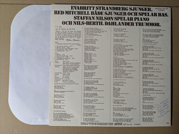 洒落た演奏にキュートな唄声が跳ねるサンバ・ジャズの「Musiklabyrinten」!! スウェーデンの女性シンガーと、ウェストコーストの名ベーシストRed Mitchellによる双頭アルバム。時折挟まれる波音のSEと怒っているような語りがストレンジな哀愁ジャズ・ボッサの「Min Tama Dront Klas Russinstedt」などを収録。ベース音を強調した録音と、ちょっとコミカルなボーカルが印象的な北欧ジャズです!*盤反り極小。音の薄い部分で時おり軽いチリパチ・ノイズ。ジャケ縁付近に擦れ/皺。裏右下に書き込み。テクスチャー・ジャケです。