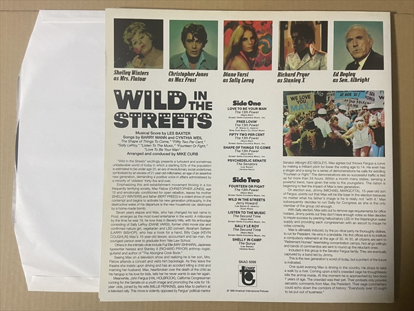 シタール入りでワイルドなガレージ・サイケの「Wild In The Streets」! 68年公開のロック・ミュージシャンが大統領となるデストピア映画のサントラ盤。Barry Mannが作曲したB/C級バンドが演奏するガレージ・パンクを中心に、Mike Curbのアレンジらしいハーモニーの「Listen To The Music」、ドラッグ体験を豊富とさせる「Psychedelic Senate」、シタールをフィーチャーしたマーチ・インストの「Shelly In Camp」なども収めた、カルト・ムーヴィーサントラです!*重量盤です。
