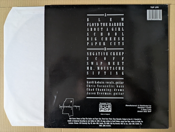 ネガティヴな世界観とキャッチーなメロディーがミックスされたグランジ・ポップの「About A Girl」! グランジ・ブームを代表する伝説的グループによるファースト・アルバム。ガレージパンク/サイケやスラッシュ・メタルからの影響を感じさせるヘヴィーでスリリングな曲に、名盤『Nevermind』で開花するメロディーセンスを発揮した「About A Girl」も収録。USA盤に収録の「Love Buzz」をオミット、「Big Cheese」を収めたUKオリジナル盤です!*MAT= MPO TUPLP 6 A / 6 B。ジャケ縁付近に擦れ/皺。上部に細かなキズ有りです。