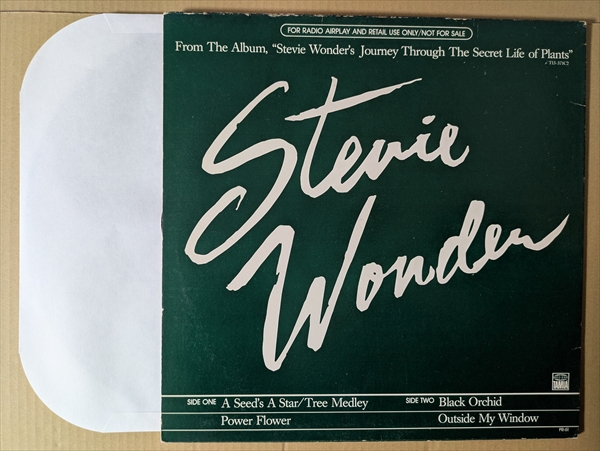 「Another Star」に通じる焦燥感あふれるディスコ・ソウル!MCのイントロに中盤ではロボ声が入るライヴ仕立ての「A Seed’s A Star」、癒し系メロウ・バラードの「Power Flower (5.31)」、同系の「Black Orchid」、ラララ・コーラスに子供達の話し声が入ったピースフルな「Outside My Window」を収録。プロモオンリーのコレクターズ・アイテムです![4track 12inch]*音の薄い部分で軽いチリチリ/パチ・ノイズ。ジャケ縁付近に擦れ/皺。左上に皺大。白ラベルのプロモ盤です。