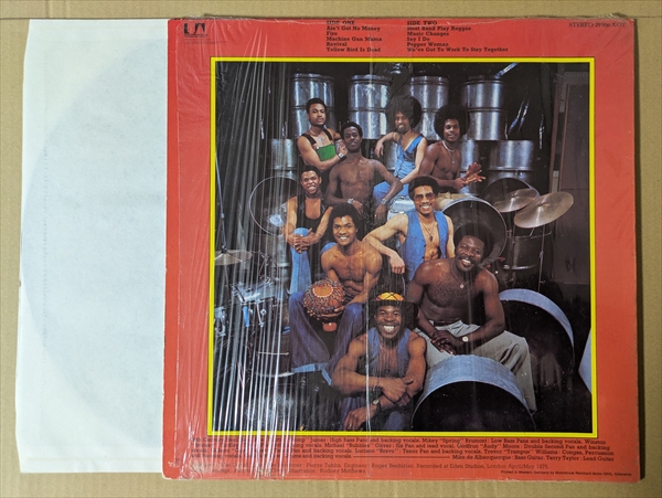 漆黒で熱いスチール・ファンクの「Ain’t Got No Money」!サンプリング・ネタ定番のHeaven And Hellで有名なUKのパン・バンド。キャッチーなコーラスのカリプソ「Machine Gun Mama」、R. Stones「Satisfaction」をビミョーにパクったタイトル曲、タイトル通りの「Steel Band Plays Reggae」などを収録。凡百のパン・バンドとは一線を画すファンキーなサウンドです!*音の薄い部分に時おり軽いチリ/パチ・ノイズ。ジャケ縁付近に擦れ/皺有りです。