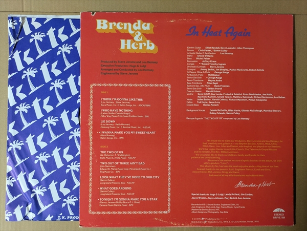 ゴージャスなストリングスで飛翔感あふれる爽快ソウルの「The Two Of Us」!マイアミはT.K.傘下のDriveレーベルからリリースされたマイナー・ソウル・デュオによる唯一のアルバム。焦燥感あふれるディスコ・ソウルの「I Who Have Nothing」や、ブルージーなニューソウル・テイストの「I Wanna Make You My Sweetheart」なども収録。男女デュオならではの掛け合いも随所で聴かせるアルバムです!*盤反り小。音の薄い部分で稀に極軽いチリ/パチ・ノイズ。ジャケ縁付近に擦れ/皺有りです。