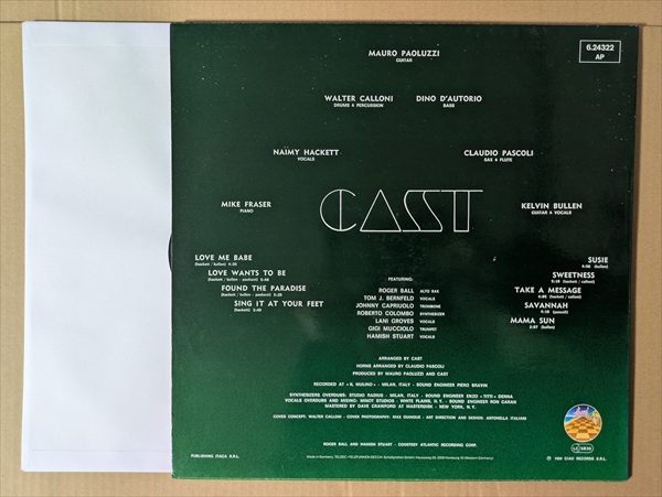 イタリア産AOR/モダン・ソウルの傑作!AWBのメンバーも参加した現地のミュージシャンによる演奏に、NYで男女のボーカルをダビング&ミックスダウンするという、Changeと同じ手法でプロデュースされた作品。洒落たブラジリアン・フュージョン・テイストのナンバーから、熱いモダン・ファンク、甘いボーカルが冴えるメロウ・スウィートまで、捨て曲無しの人気盤です!*外周にヒートダメージ/針揺れ大(針圧を重くできないプレイヤーでは針飛びの可能性があります。)音の薄い部分で時おり軽いチリ/パチ・ノイズ。ジャケ縁付近に擦れ/皺。表裏コーティング・ジャケです。