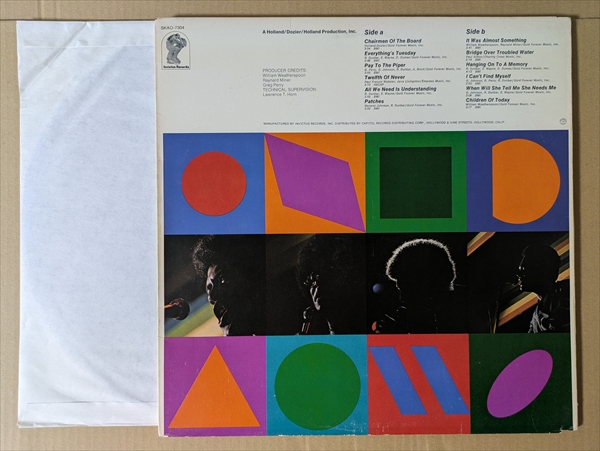 オルガン入りブレイクで始まる甘酸っぱさ満点なインヴィクタス・ソウルの「All We Need Is Understanding」!General Johnsonが参加していたヴァージニアのグループによるセカンド・アルバム。TOKYO NO.1 SOUL SETがサンプリングした「All We〜」に、H=D=Hプロデュースらしくポップな「Everything’s Tuesday」、スペイシーなギターが印象的なサイケデリック・ソウル「Hanging On To A Memory」など、ヴァラエティに富んだアルバムです!*所々パチ・ノイズ。「Bridge Over Troubled Water」に周回パチ・ノイズ多。ジャケ縁付近に擦れ/皺。見開きジャケです。