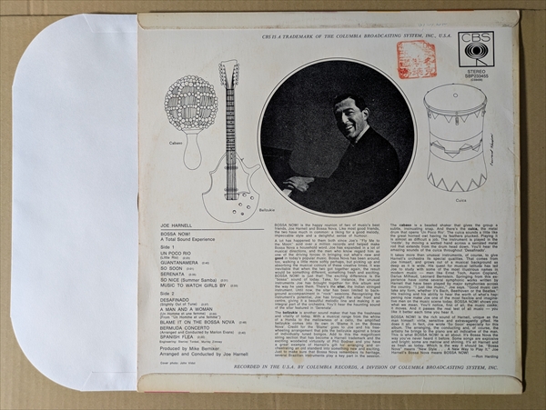 華やかで洒落たサンバ・ジャズの「Desafinado (Slightly Out Of Tune)」! アメリカでいち早くボサノヴァを取り入れたピアニスト/コンダクター。 ブラジリアン/ラテンの数々を軽快なピアノとストリングスでカラフル&ゴージャスに料理。シタール(?)を用いた凝ったアレンジの「Music To Watch Girls By」なども収録。音ヌケが良くクラブ映えしそうな録音も素晴らしいです!*音の薄い部分に稀に軽いチリパチノイズ。「A Man And A Woman」の前半に軽い周回パチ・ノイズ多。ジャケ縁付近に擦れ/皺。裏右上にスタンプ。下部にシミ。オモテ面コーティングのフリップバック・ジャケです。