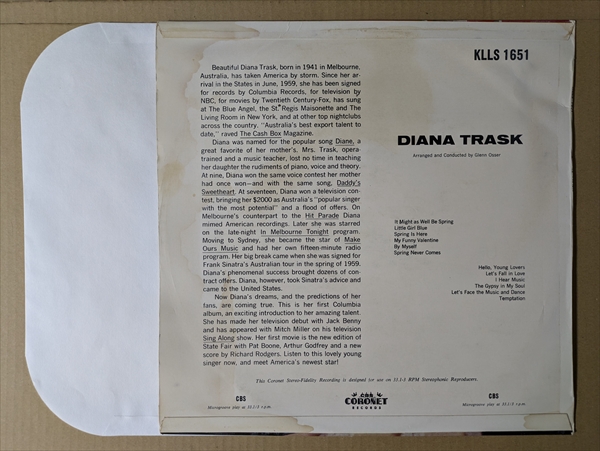ラテン・フレイヴァでゴージャスなビッグバンド・ジャズボーカルの「Let’s Face The Music And Dance」! オーストラリアはメルボルン出身のシンガーによるファースト・アルバム。A面にRodgers & Hart作品を中心とした しっとりとしたバラードを、B面に明るめのメロディーやダイナミックなアレンジの曲を収録。コントラストの効いた構成が彼女の歌声を際立たせた人気作。独自のジャケ・デザインでリリースされたオーストラリア盤です!*ジャケ縁付近に擦れ/皺。裏にシミ大。表裏コーティングのフリップバック・ジャケです。